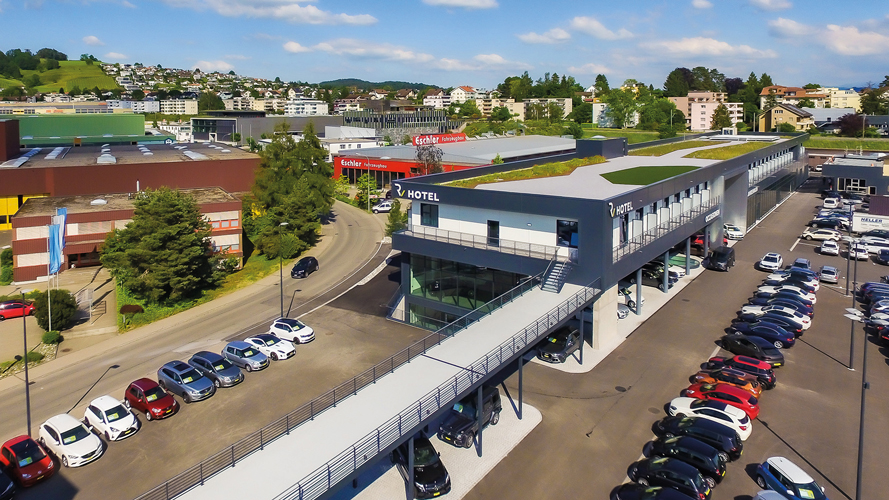 Die Autowelt von Rotz gehört zu den grössten Autohändlern der Ostschweiz mit über 3500 verkauften Autos pro Jahr. Über den Horizont hinaus zu denken, war schon immer eine Devise von Hanspeter von Rotz. Deshalb bietet er auch schon seit vielen Jahren Hotelzimmer an, insbesondere für Geschäftsleute. Über der 130 Meter langen, neuen Ausstellungshalle baute er ein Business Hotel, das perfekt auf die Wünsche der anspruchsvollen Kundschaft abgestimmt ist.